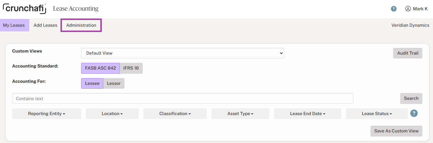 At the top of the Client's My Leases page, click on the Administration Tab.