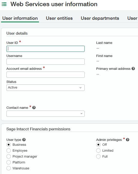 IMPORTANT: In order to connect Sage Intacct to Crunchafi Data Extraction, an Admin user must create a Web Services user with specific read-only access. These instructions are slightly different if your Intacct company uses Role-based or User-based security.