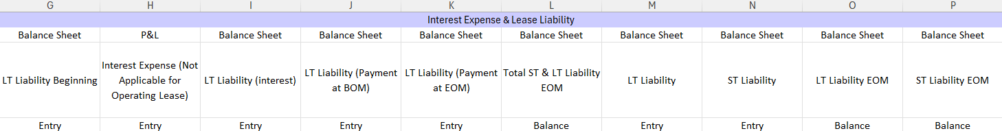 P&L Amortization Expense -Finance/ Operating Lease Expense- Operating (Column C):
