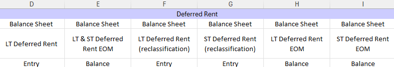 Shows total Short-Term Deferred Rent at the end of the current month.